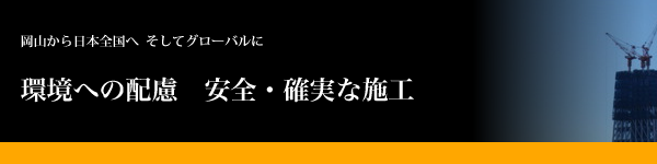 弊社は、昭和62年の創業以来、岡山市に拠点を置き、主に上下水道・護岸・港湾工事等の公共工事をはじめと鉄道近接工事その他土木工事を手がける地域に密着した総合建設会社です。